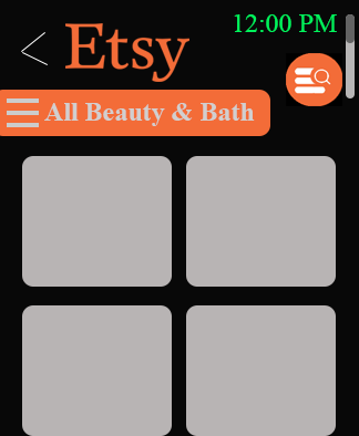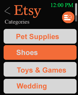 If the user makes a category selection that they are not happy with and they would like to go back to the main category menu, they will double tap on the Etsy Logo. If the user chooses to go back to the homepage, they will either need to continue to tap on the Etsy logo until they return to the main homepage or they will need to double tap on the Digital Crown which will automatically jump them back to the main homepage.